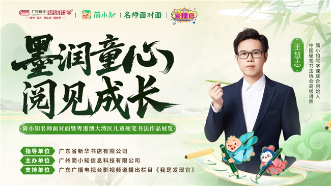 本次活动由广东省新华书店有限公司指导,广州简小知信息科技有限公司主办,广东广播电视台影视频道栏目《我是发现官》支持。作为深耕岭南的文化阵地,新华书店始终是全民阅读和素养教育的重要推动者;作为儿童素养教育领域的深耕者,简小知通过“线上课程+线下互动”的融合模式,加速知识吸收与运用;《我是发现官》栏目则用镜头记录成长故事,让美好被看见、被传播。此次三方联合,以课堂为基,通过名师面对面传授书写之道,以书法作品展见证成长足迹,将儿童素养教育融入公共文化空间。