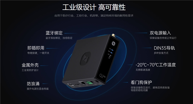 针对石油行业点位分散、环境恶劣的特点,Q2PRO展现了强大的环境适应性。设备内置4G全网通模块,无需依赖光纤或内网,只要有4G信号即可部署,彻底解决了偏远油田、山区管线等点位“无网”的接入难题。