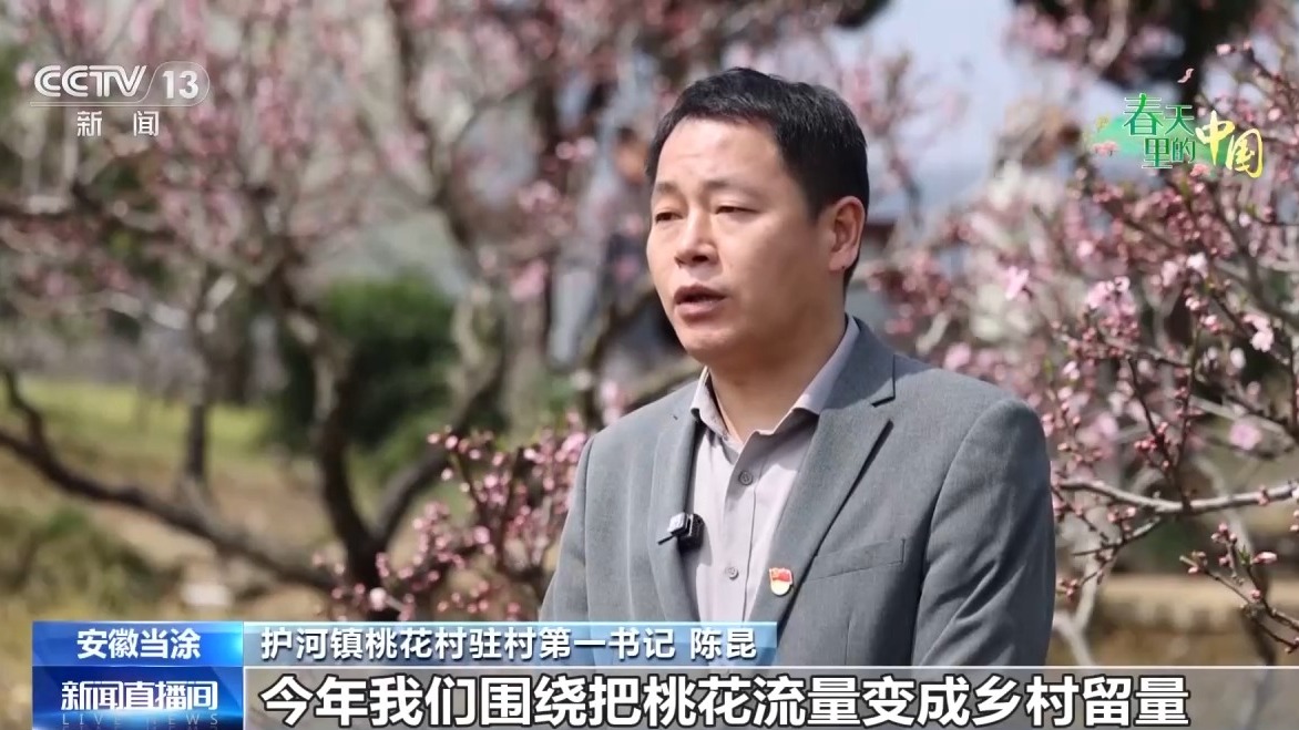 护河镇桃花村驻村第一书记 陈昆:今年我们围绕把桃花流量变成乡村留量,通过民宿、咖啡文创、亲子体验这些实实在在的项目留住游客,同时带动桃花酿酒、土特产等产业发展,拉长消费链条。