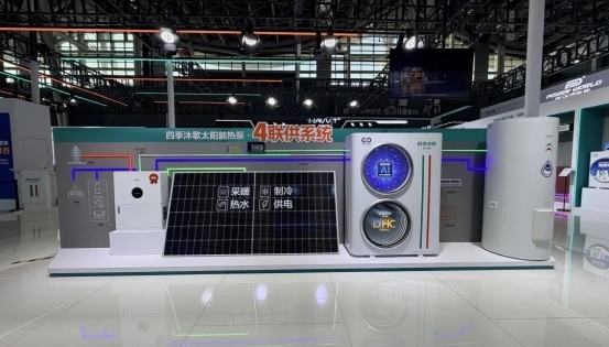 据了解,四季沐歌太阳能热泵四联供系统在展会上一经推出,便占据展会C位,吸引了在场观众和行业的高度关注。何为四季沐歌太阳能热泵四联供系统?从现场四季沐歌展厅关于这一新品的直观化展示和张立峰院长的介绍中可以看出,这是一套将太阳能光热、光伏和热泵进行多能耦合的系统,这一套系统就能同时满足夏天制冷、冬天采暖、全年热水、家庭供电四大需求,如果加上储能还可以存电备用,光照达标时可以100%用太阳能,真正做到零电费、零碳排放、全舒适,并且无论是家用、轻商还是大型建筑都能实现全套供应。这样的太阳能热泵四联供系统,实现了能源自给自足的绿色闭环,可谓是一套一次性投资、长期收益的“家庭能源生态”。