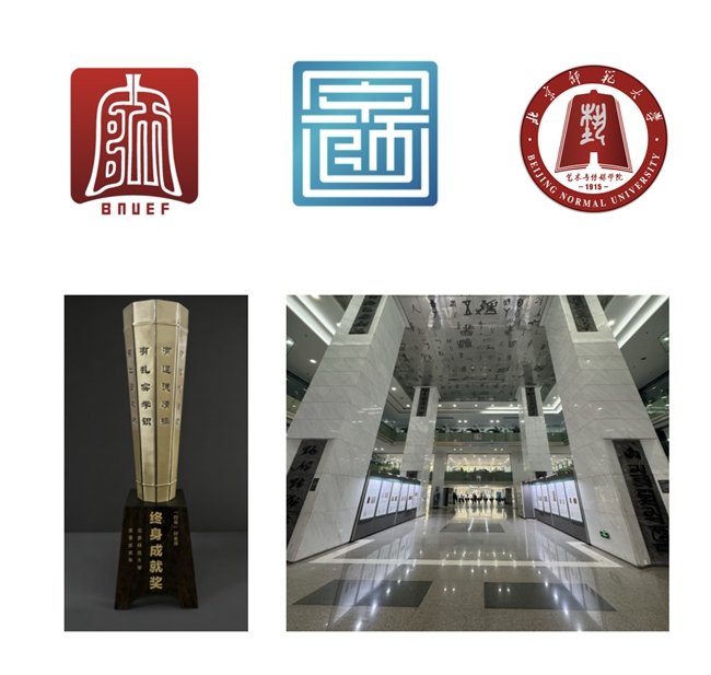 北京师范大学图书馆、基金会、艺术与传媒学院系列标识设计,四有好老师奖杯设计,主楼大堂公共空间文字设计。(设计者:郎丽)