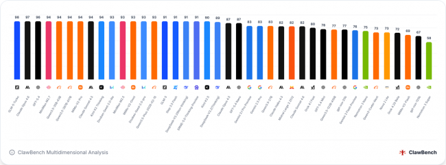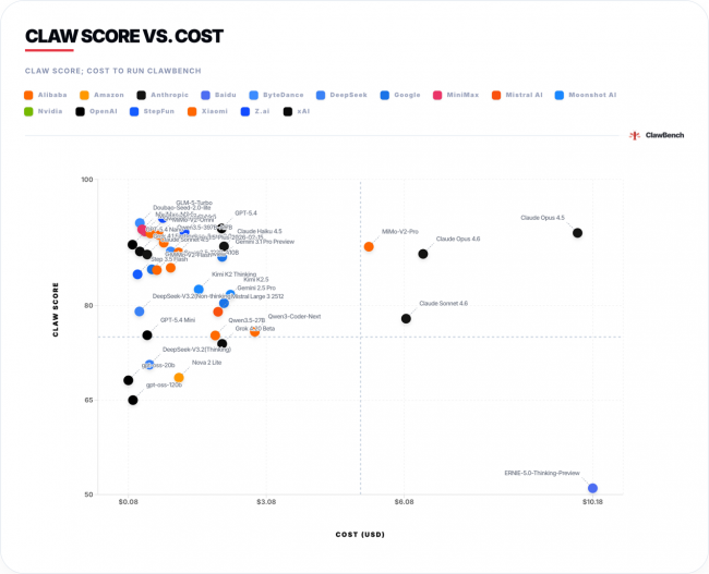 ClawBench是当前全球聚焦大模型智能体真实落地能力的标杆级评测体系,围绕大模型在办公协同、信息检索与研究、内容创作、数据处理与分析、软件工程等核心业务场景,构建了多维度、全场景的量化评测标准。其发布的CLAW SCORE核心评分、运行速度、调用成本、综合价值等核心指标,已成为全球AI产业界衡量大模型智能体落地能力的核心参考,是检验大模型从“技术能力”向“实用价值”转化的权威标尺。