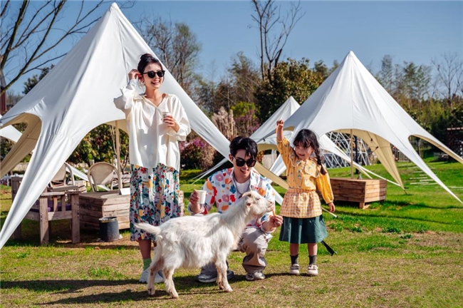 例如,芳草地度假酒店立意于“与自然和谐共存”,倡导亲近自然的生活方式。山丘绿荫间,有着形态各异的特色住宿,如小木屋、船屋、草屋、帐篷,还有配套的游乐场、马场、自然教育及儿童拓展中心等休闲生活设施,让成长在玩耍中自然发生。