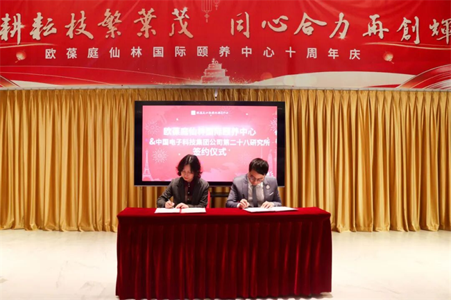 此外,中国电子科技集团公司第二十八所与南京欧葆庭仙林国际颐养中心也在本次庆典上进行了签约仪式,双方将实现资源互通,拓展养老机构与社会养老服务合作。