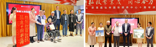 十年相伴,感恩同行。庆典上,南京欧葆庭为入住十周年长辈与入职十周年员工隆重颁发十周年纪念金钞,致敬坚守与陪伴。全场嘉宾、长辈与员工共同在欢声笑语中庆祝这一里程碑式的美好时刻。