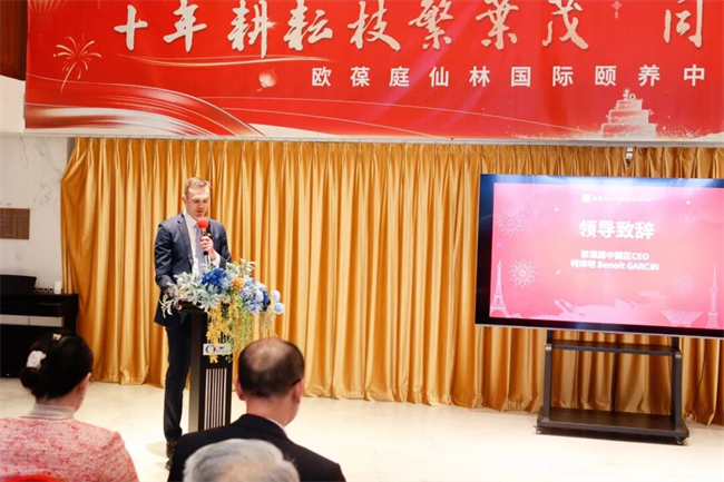 欧葆庭中国区CEO柯烨明(Benoit GARCIN)致辞中对政府、医疗及社会单位对欧葆庭的支持表达感谢,并对长辈与家属表达亲切的问候。
