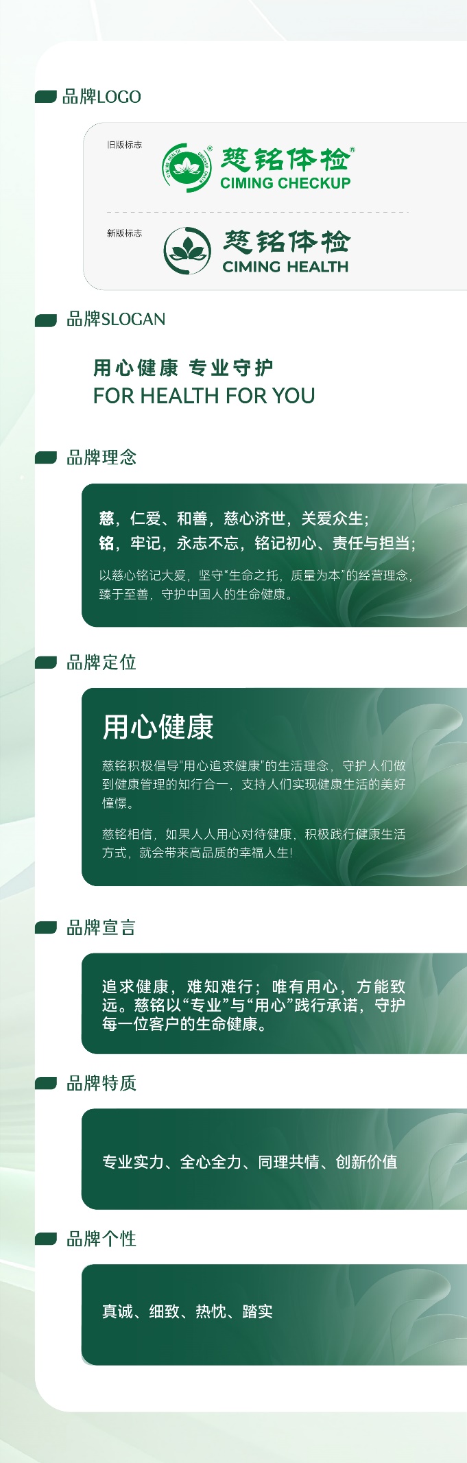 2025年,慈铭体检实施品牌焕新工程,全面重构品牌体系,并正式启用新版VI视觉识别系统,以更鲜明的品牌形象强化市场传播,提升品牌影响力。