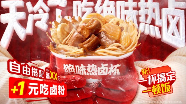 绝味“夜宵节”以 “鲜” 为核,启动全国门店 “出摊计划”,将标准化门店升级为烟火气夜市摊位,搭配爆品、畅饮会员福利,联手美团外卖「超级发布」IP 活动,线下升级夜间社交场景、线上打造 “卤味 + 饮品” 消费组合。冬日“热卤季”推出爆款热卤杯,围绕新品上市打造趣味内容,借势网友创意玩梗互动,凭追更式爽文小票、暖心福利、试吃员矩阵等花式宠粉玩法,实现内容破圈与用户共情。