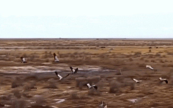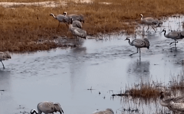 青海省海西蒙古族藏族自治州都兰县则迎来上万只灰鹤。都兰县位于柴达木盆地腹地,是灰鹤南北迁飞路上重要的“能量补给站”。每年3月初,大批灰鹤会陆续飞到这里,在湿地草滩间觅食休整,等到补充完体力后,会陆续向北迁徙,前往夏季繁殖地。