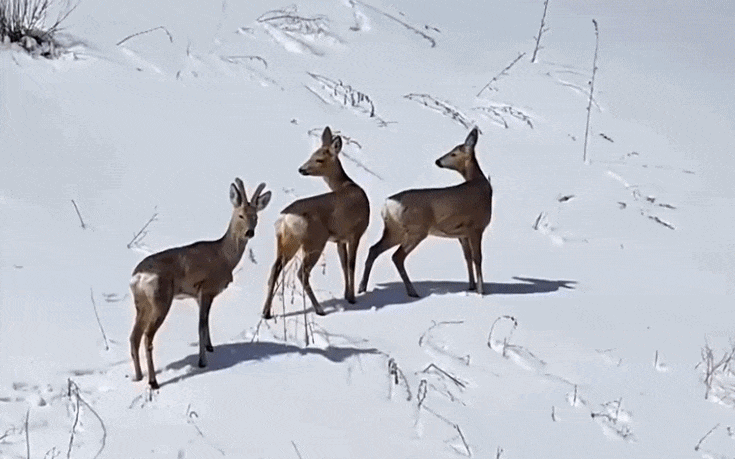 除了候鸟,趁着气温回暖现身的还有野生狍子。近日,在新疆伊犁哈萨克自治州巩留县的恰西国家森林公园,几只野生狍子在覆雪的林间草地上结伴而行,时而驻足张望,时而轻盈奔走。