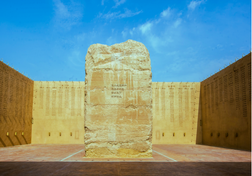 “只有河南·戏剧幻城”内写满河南18地市、1700多个县乡名字的夯土墙。