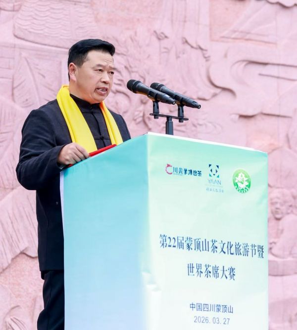 开幕式上,中国茶叶流通协会会长王庆通过视频致辞,高度肯定了蒙顶山茶在品牌培育、产业标准建设等方面取得的成就。四川省川黄茶业集团有限公司董事长张大富作为本土企业代表致欢迎词,表达了以产业振兴带动茶农增收、以文化传承赋能品牌发展的决心。
