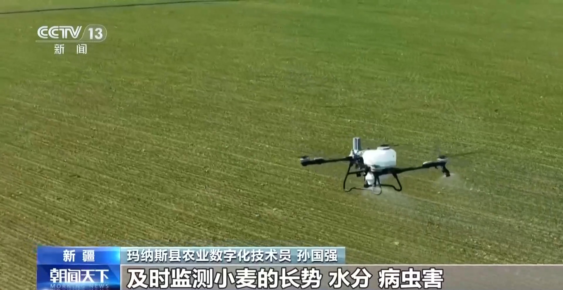 在玛纳斯县郑家庄村,这两天,当地正在开展植保作业,预防小麦雪腐病。雪腐病是冬小麦早春主要病害,多在积雪融化后低温高湿环境下发生,易造成麦苗烂根、枯叶、成簇枯死。玛纳斯县农业数字化技术员监测发现,当地部分田块受前期低温积雪影响,雪腐病发病风险高于往年,为此,农业数字化技术员结合苗情、墒情、地力条件,科学制定了“一田一策”追肥方案,精准调控施肥量与飞行参数,助力冬小麦返青拔节。
