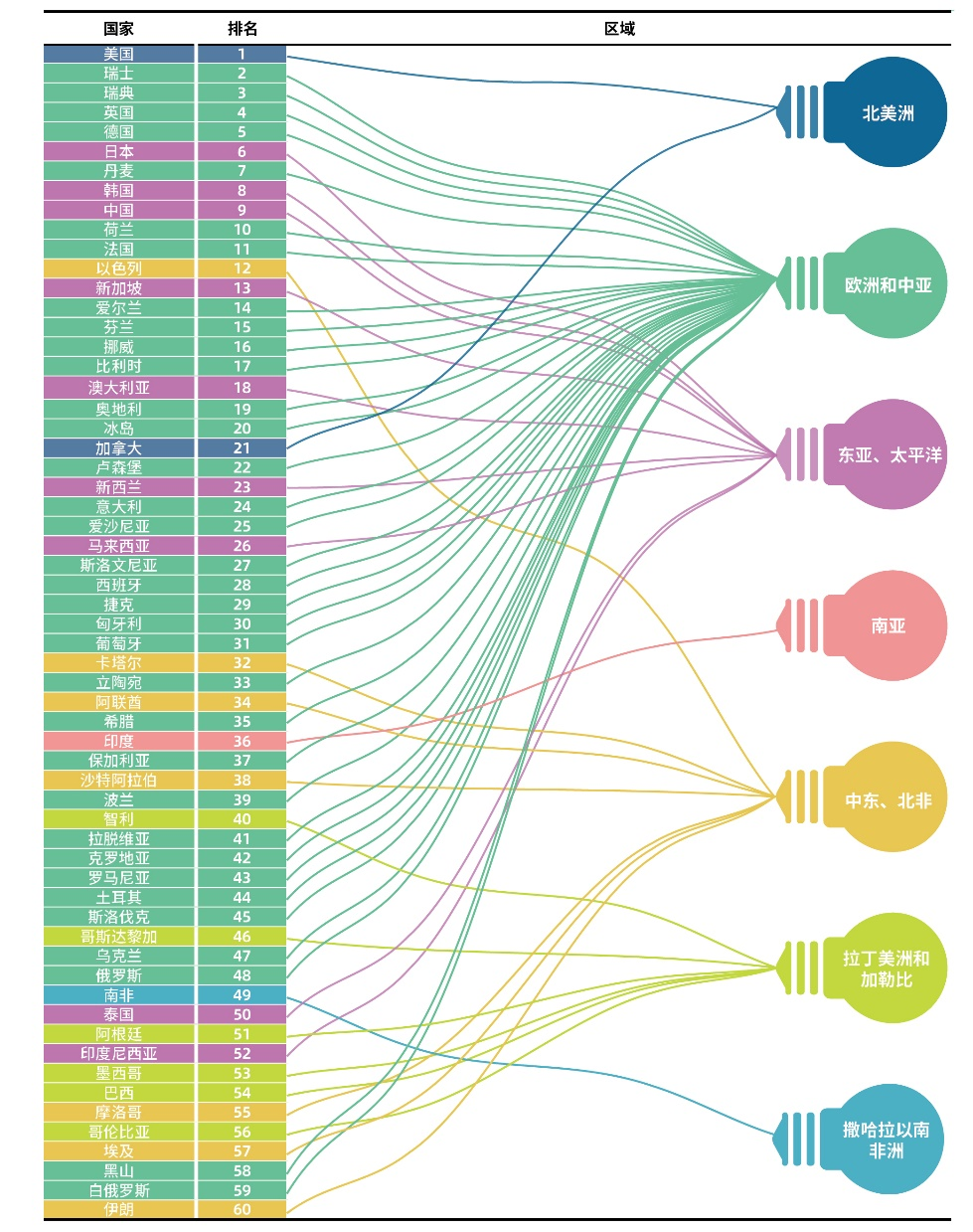 《国家创新指数报告2025》从创新资源、知识创造、企业创新、创新绩效、创新治理5个方面设置43个指标对世界60个国家进行了创新能力综合评价。