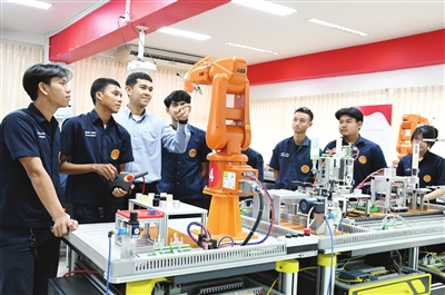 2016年3月8日,大城技术学院内,中泰两国国旗迎风飘扬,全球首个鲁班工坊正式揭牌。此后三年,泰国鲁班工坊实现跨越式发展:空间从200平方米扩展为2000平方米,从单一专业发展为新能源汽车、物联网、数控、高铁等六大专业,境外首个EPIP教学研究中心也落户于此,成为鲁班工坊全球布局的旗舰项目。与此同时,鲁班工坊的足迹不断延伸,印度、英国、印度尼西亚、巴基斯坦,一个个工坊相继落地,将中国技能、标准、理念传递到世界各地。