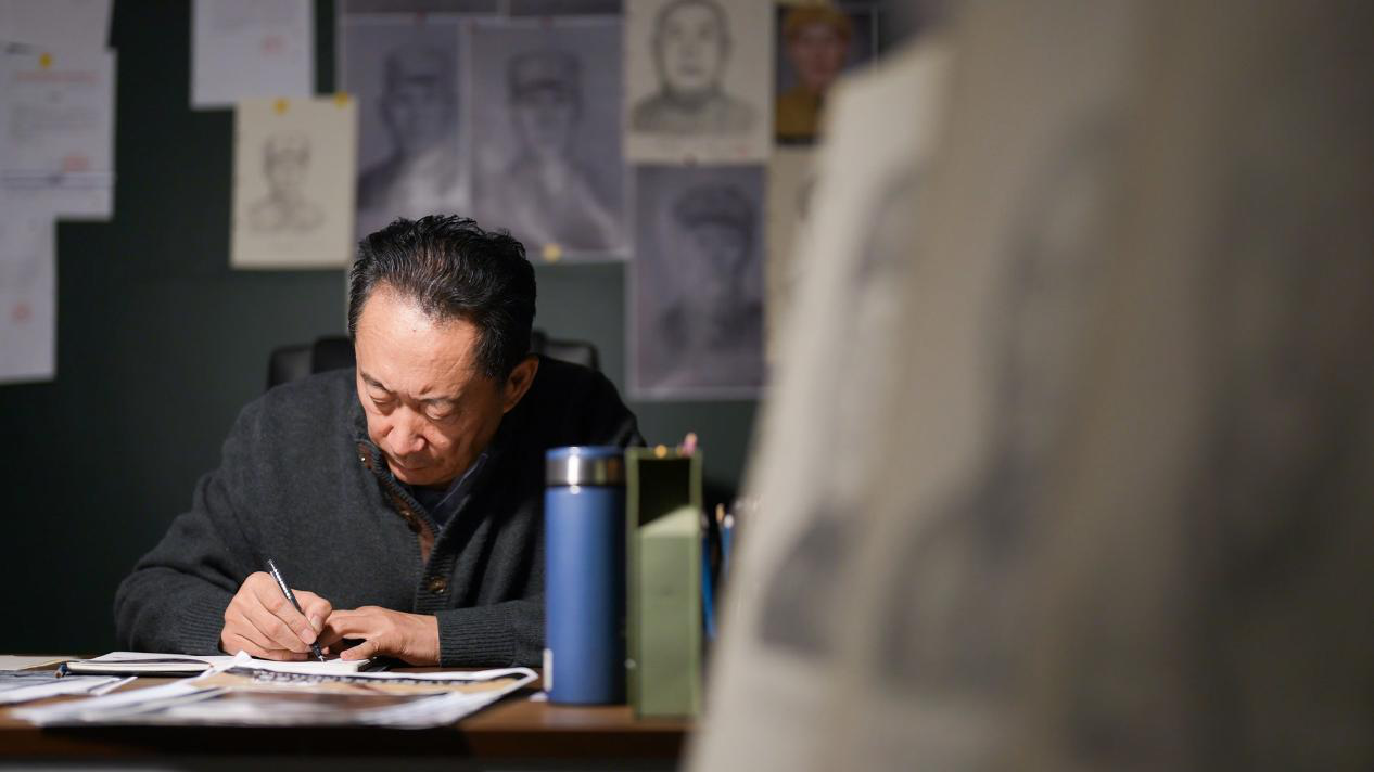 工作室的英烈墙上,200余幅烈士画像在灯光下静静闪耀。他们牺牲在硝烟弥漫的战场,却在画笔的勾勒间,重新拥有了清晰的面容。