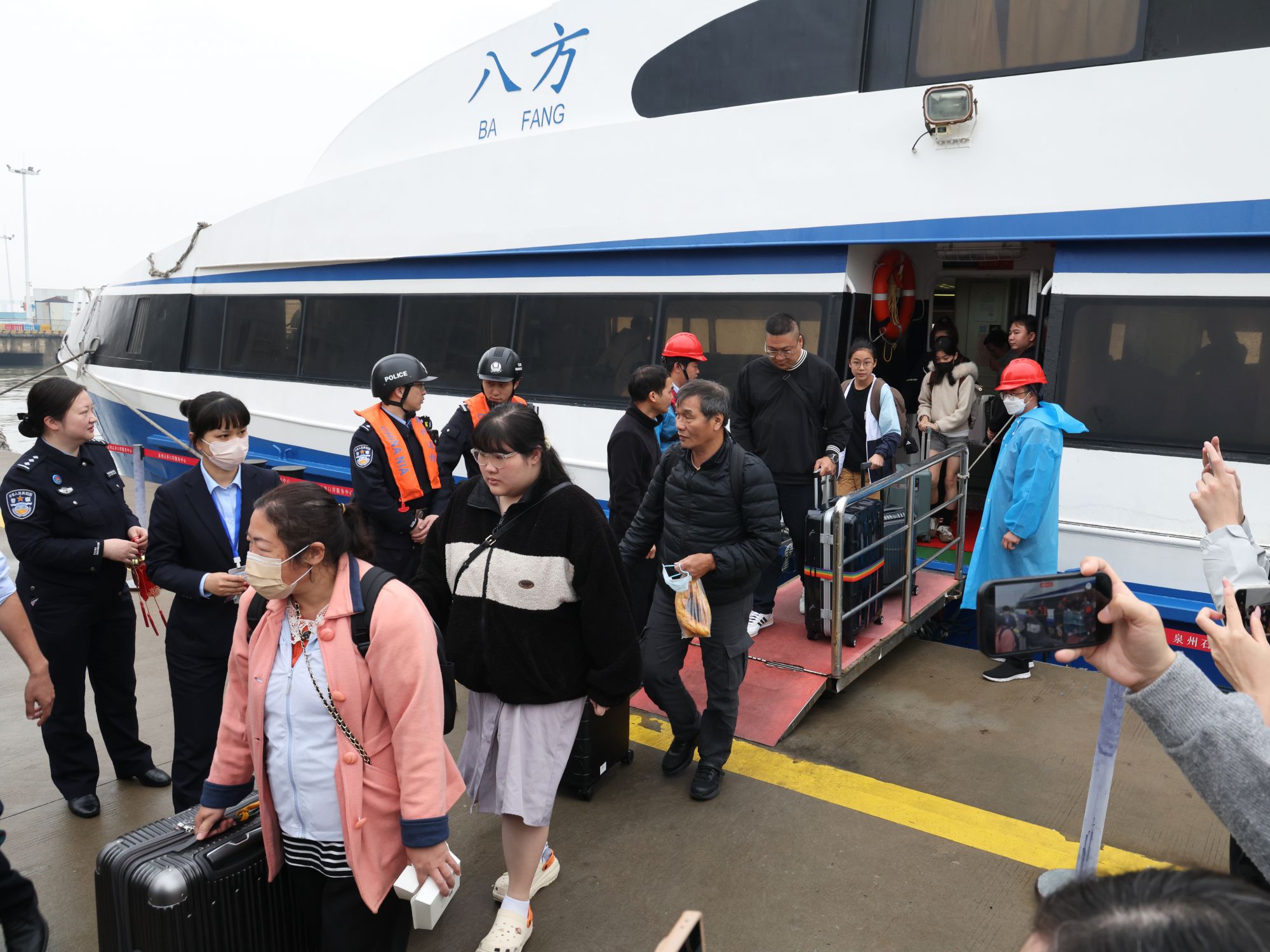 4月3日,在福建泉金客运码头,旅客走出泉金“小三通”客运航线“八方”轮。新华社记者 姜克红 摄
