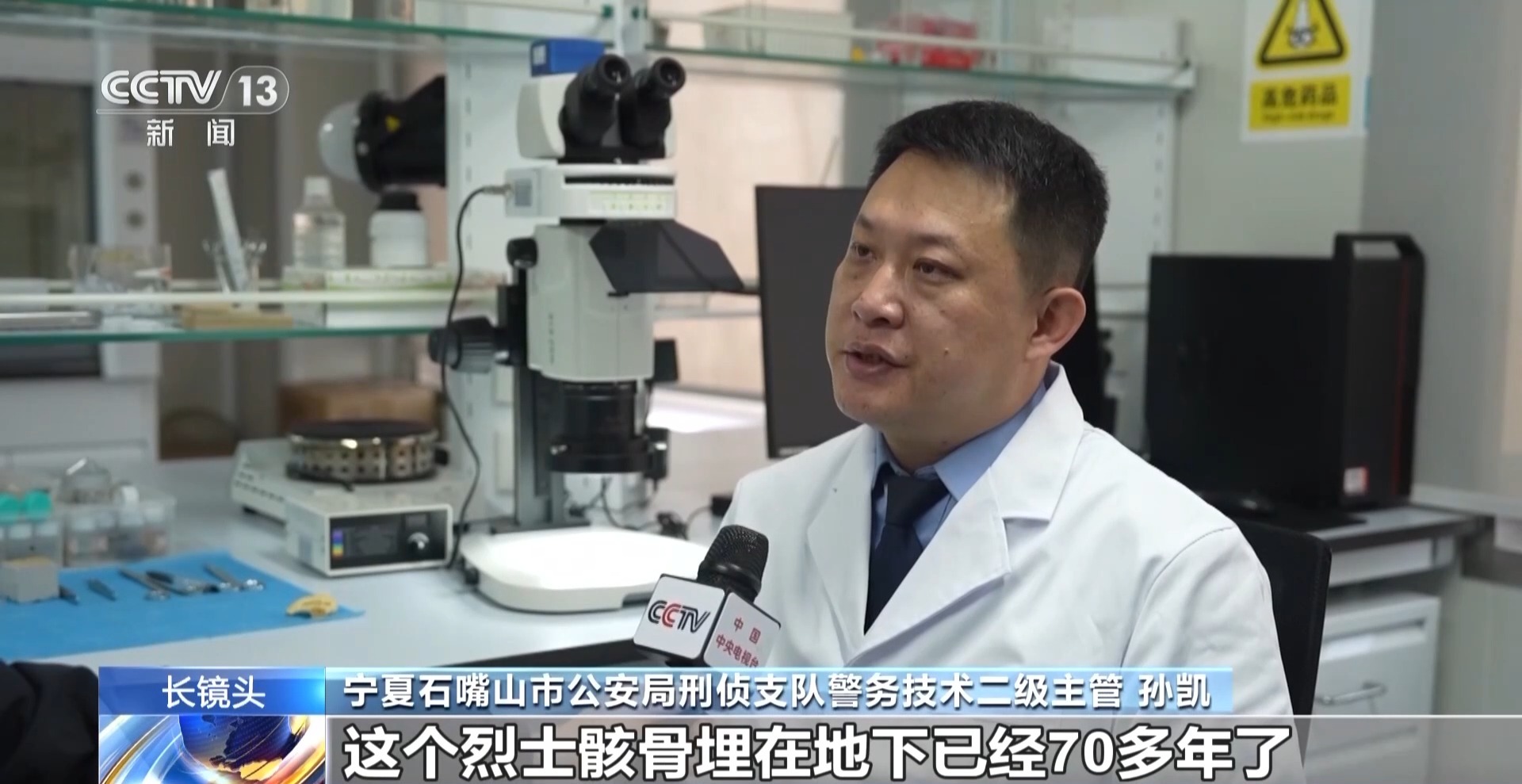 宁夏石嘴山市公安局刑侦支队警务技术二级主管 孙凯:烈士骸骨埋在地下已经70多年了,土壤对于烈士骸骨会产生一定影响,也会对检验结果造成一定影响。所以我们派专人去现场对烈士骸骨进行了提取。