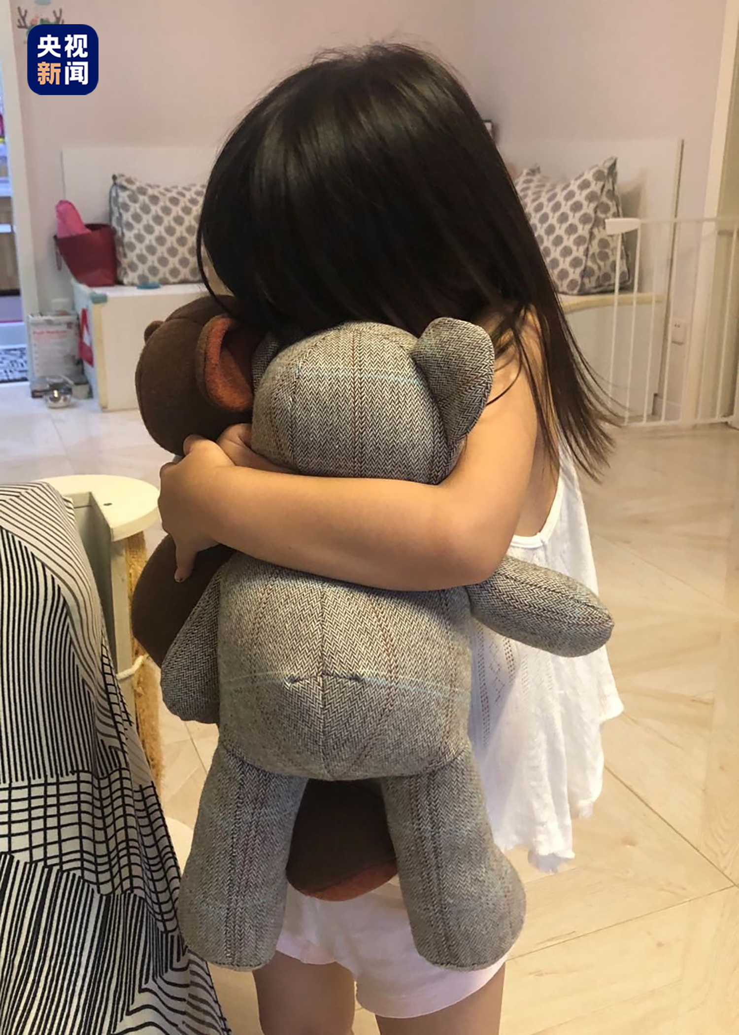 小女孩抱着“姥姥熊”