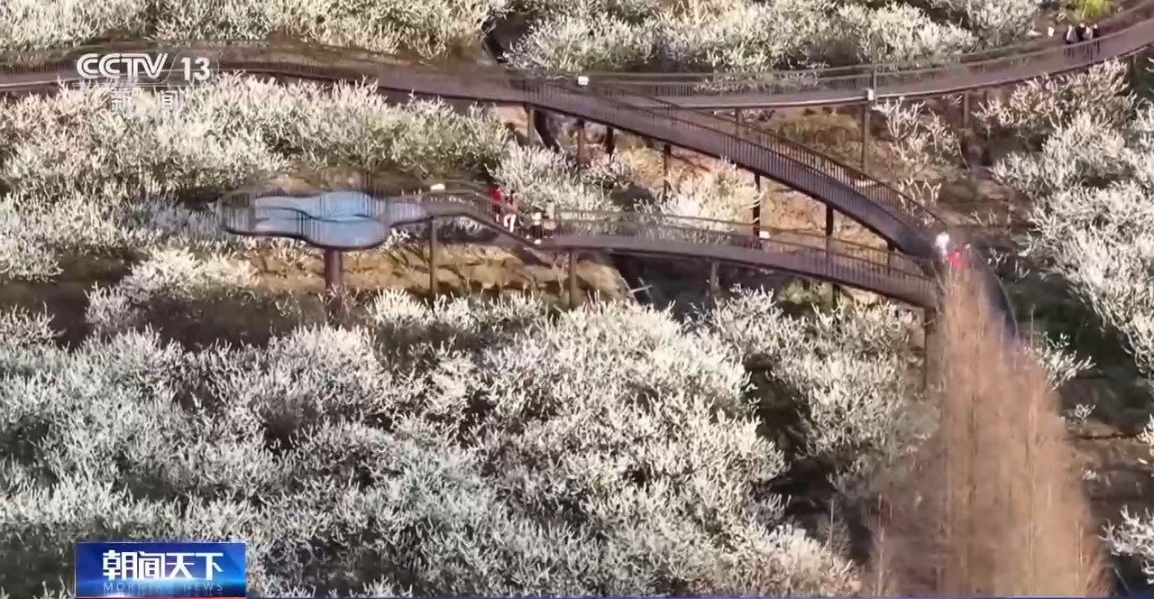 在浙江嘉兴桃园村,雪白的李花连绵成片。桃园村推出自然探趣嘉年华、文化雅集等6大主题活动,赏花海、做手工、探野趣。丰富多样的自然美育,覆盖全年龄段需求。