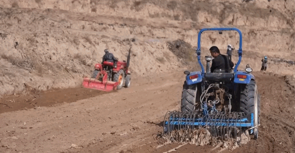而今天,方式完全变了。玉米田里有十几台农机正在同时作业。旋耕起垄覆膜机,一次性就把旋耕、起垄、覆膜三道工序都完成了,代替人工多轮次操作,大幅节省人力和时间。最有意思的是那台拖拉机,它牵引着残膜捡拾机,专门清理上一季留下的地膜。残膜要是不捡干净,会板结土壤、影响下一季作物出苗。