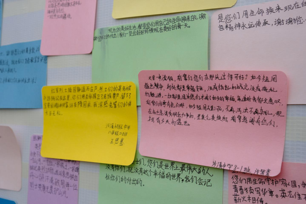 ↑川陕革命根据地红军烈士陵园内,通江县中小学的学生们写给红军英烈的信。新华社记者高玉娇 摄