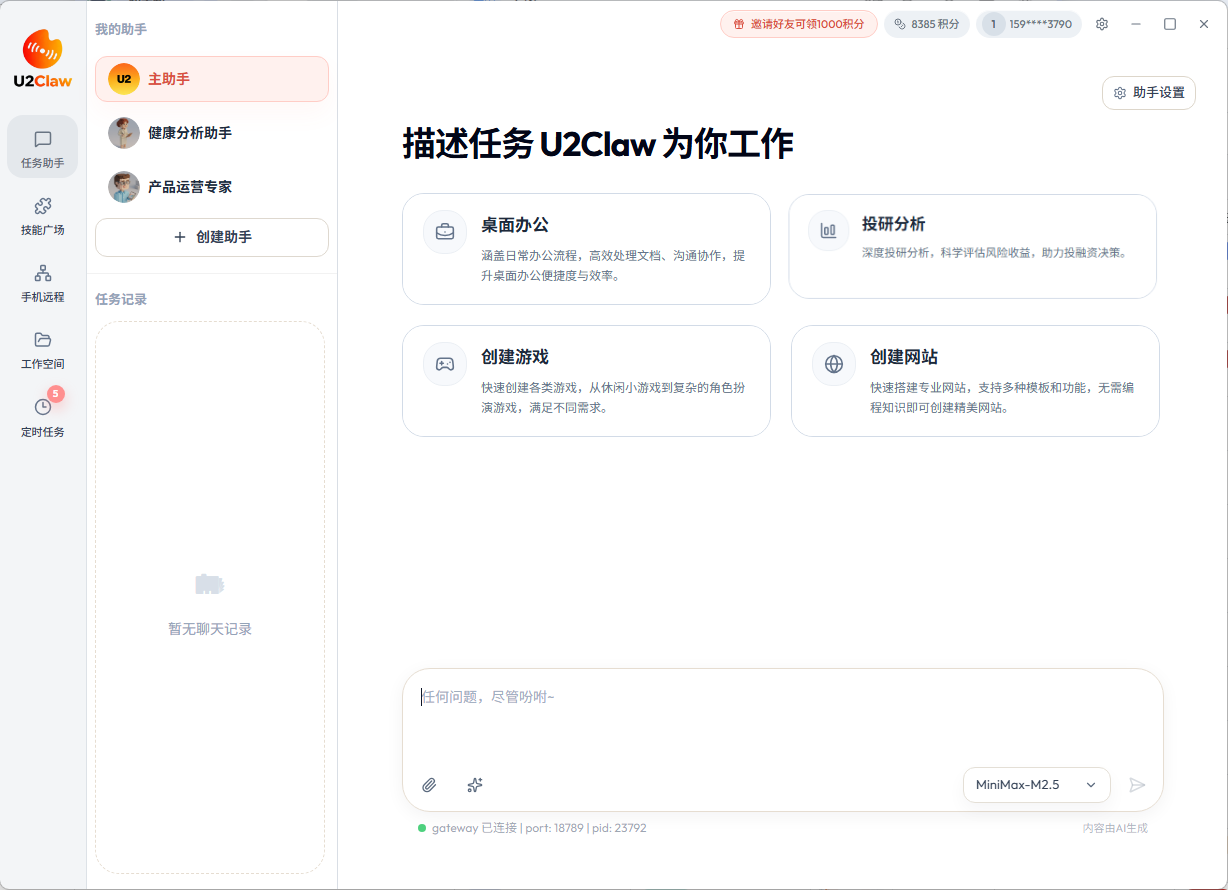AI Agent很火,但很多产品止步于“更聪明的问答”。U2Claw的定位很明确:桌面级实干派。