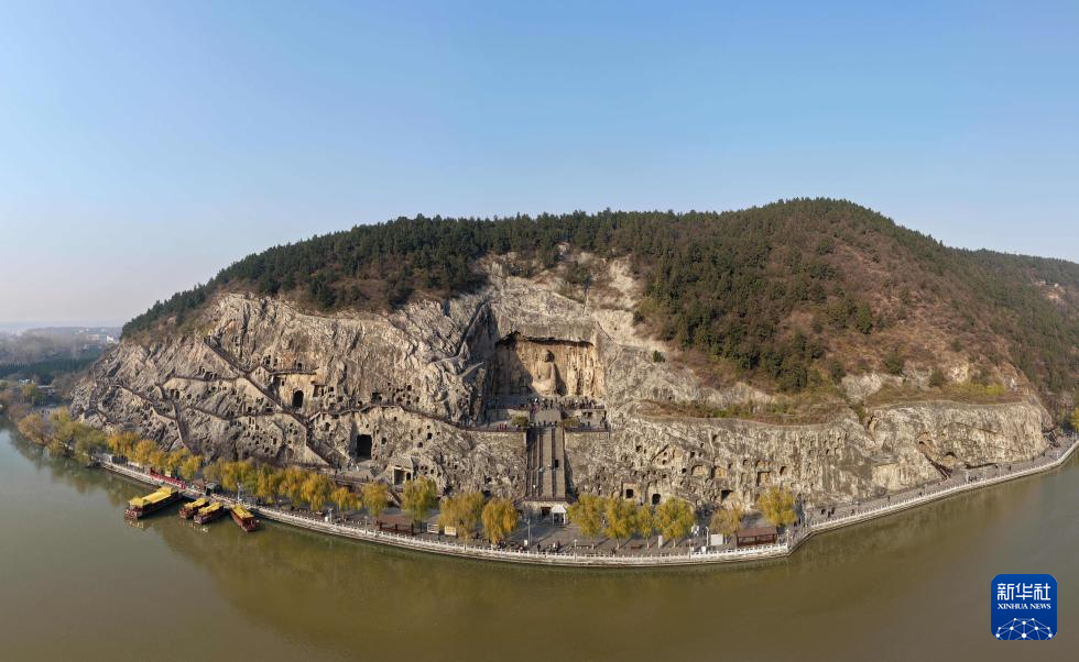 2025年12月5日,游客在河南省洛阳市龙门石窟景区游览(无人机照片)。新华社记者 李嘉南 摄