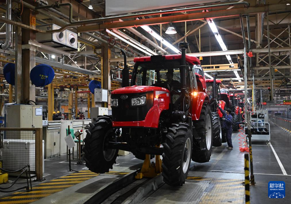 2025年11月4日,工人在位于河南洛阳的国机集团中国一拖大轮拖总装线作业。新华社记者 李嘉南 摄