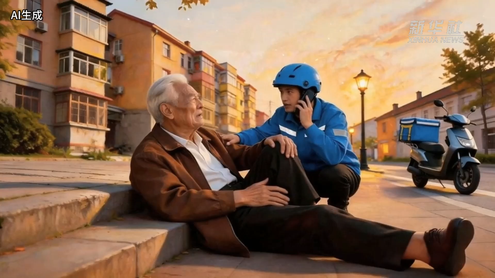 外卖小哥冒雨骑行送餐,顾客递上矿泉水不忘暖心叮嘱