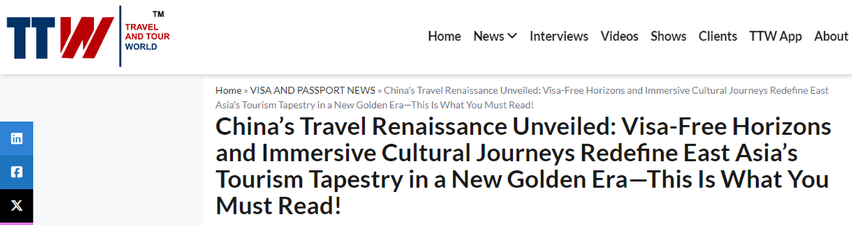 中国从观光型目的地向体验参与型旅游目的地的转变,已成为全球可持续旅游的标杆。而通过专注于真实感和参与感,中国既保护了文化遗产,也让旅游的经济效益惠及偏远的乡村。报道认为,“深度体验式旅行”的时代已然来临,这样的背景下,中国正成为全球旅行者向往的终极目的地。