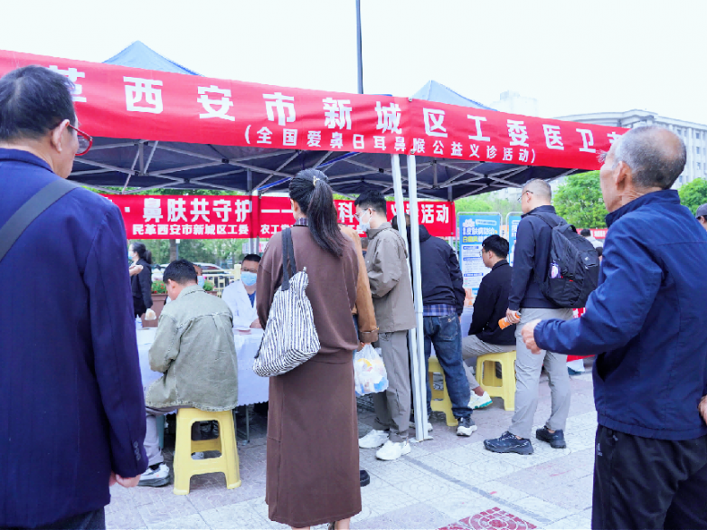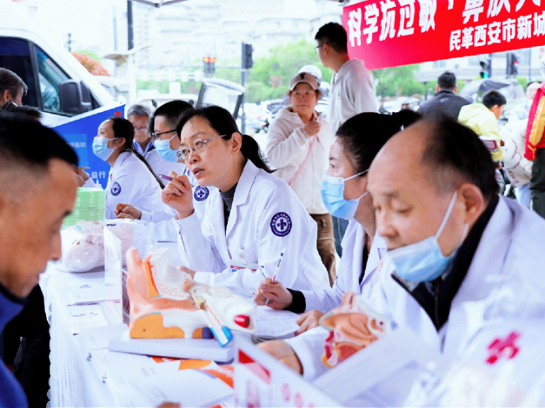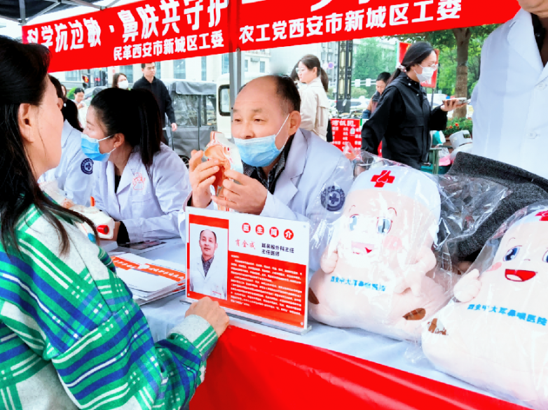 4 月 11 日是第24个全国爱鼻日,为进一步提升市民对鼻腔健康的重视、普及过敏性鼻炎等常见病症的预防和治疗方法,由民革西安市新城区工委医卫支部、农工党西安市新城区工委、西安中大耳鼻喉医院联合举办的“关爱鼻腔健康 畅享清新呼吸”公益义诊活动,在北大街地铁口如期举行。活动通过专家义诊、公益筛查、健康科普、媒体专访等形式,向广大市民普及耳鼻喉常见病防治知识,切实把健康服务送到群众身边。
