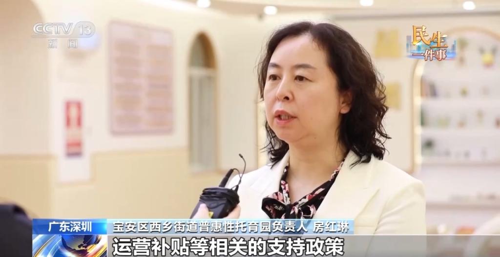 宝安区西乡街道普惠性托育园负责人 房红琳:给了我们很多的支持,比如说提供了免费的场地、建设补贴、运营补贴等相关的支持政策。