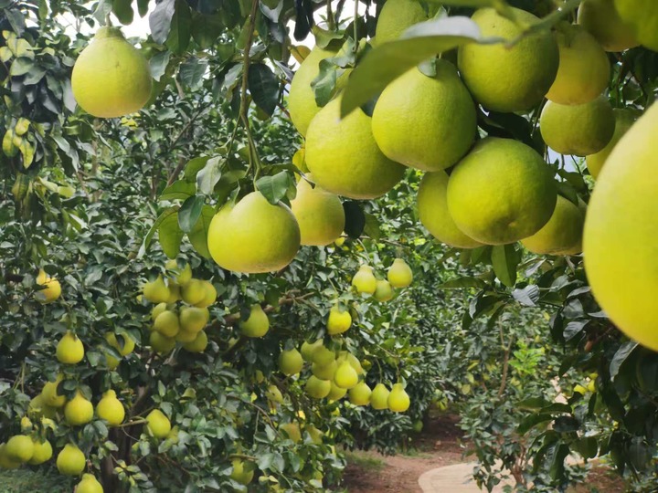 黄澄澄的金柚挂满树枝。新华社记者 燕雁 摄