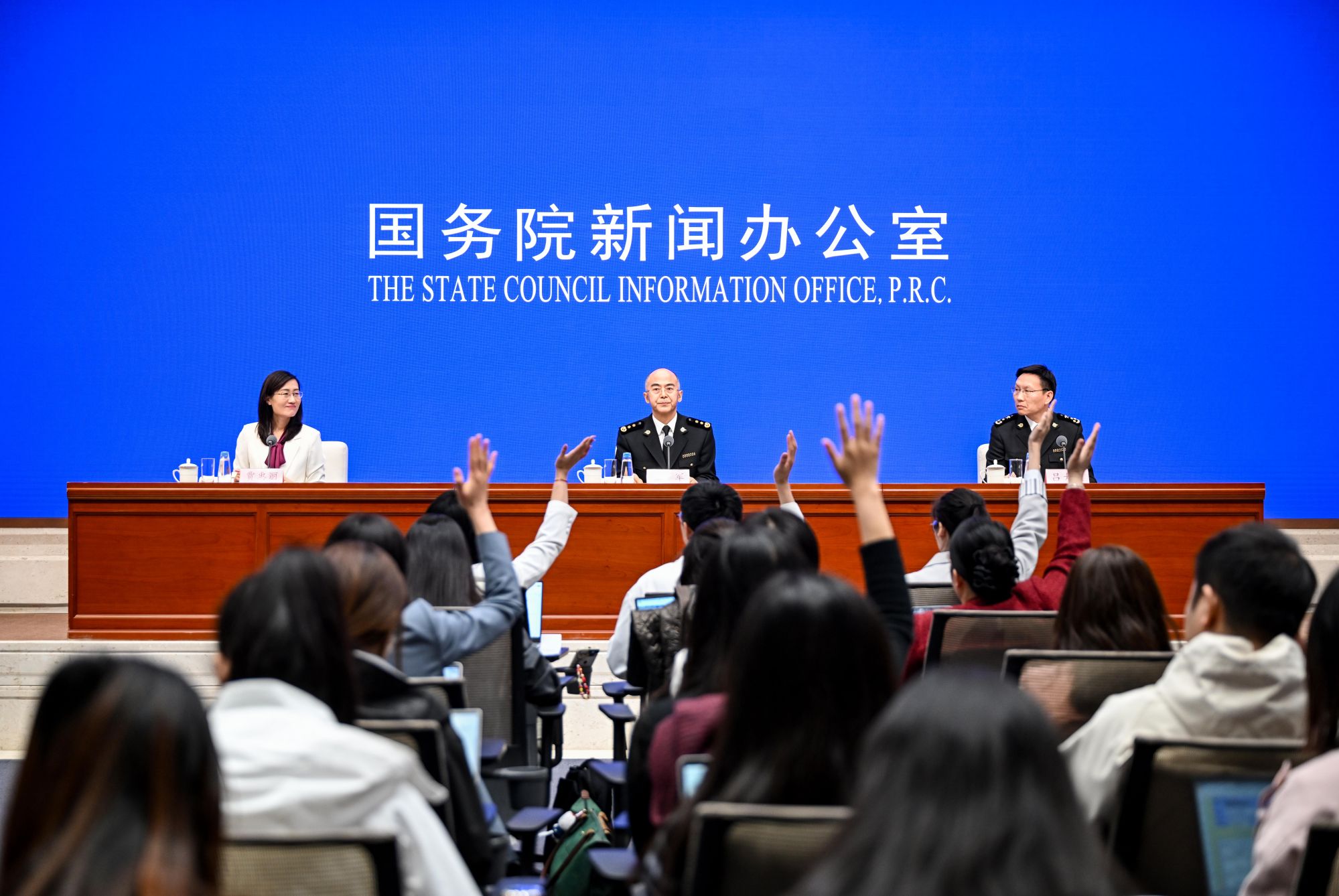 2026年4月14日,国务院新闻办公室举行新闻发布会,海关总署副署长王军,海关总署新闻发言人、统计分析司司长吕大良介绍2026年一季度进出口情况,并答记者问。新华社记者 陈晔华 摄