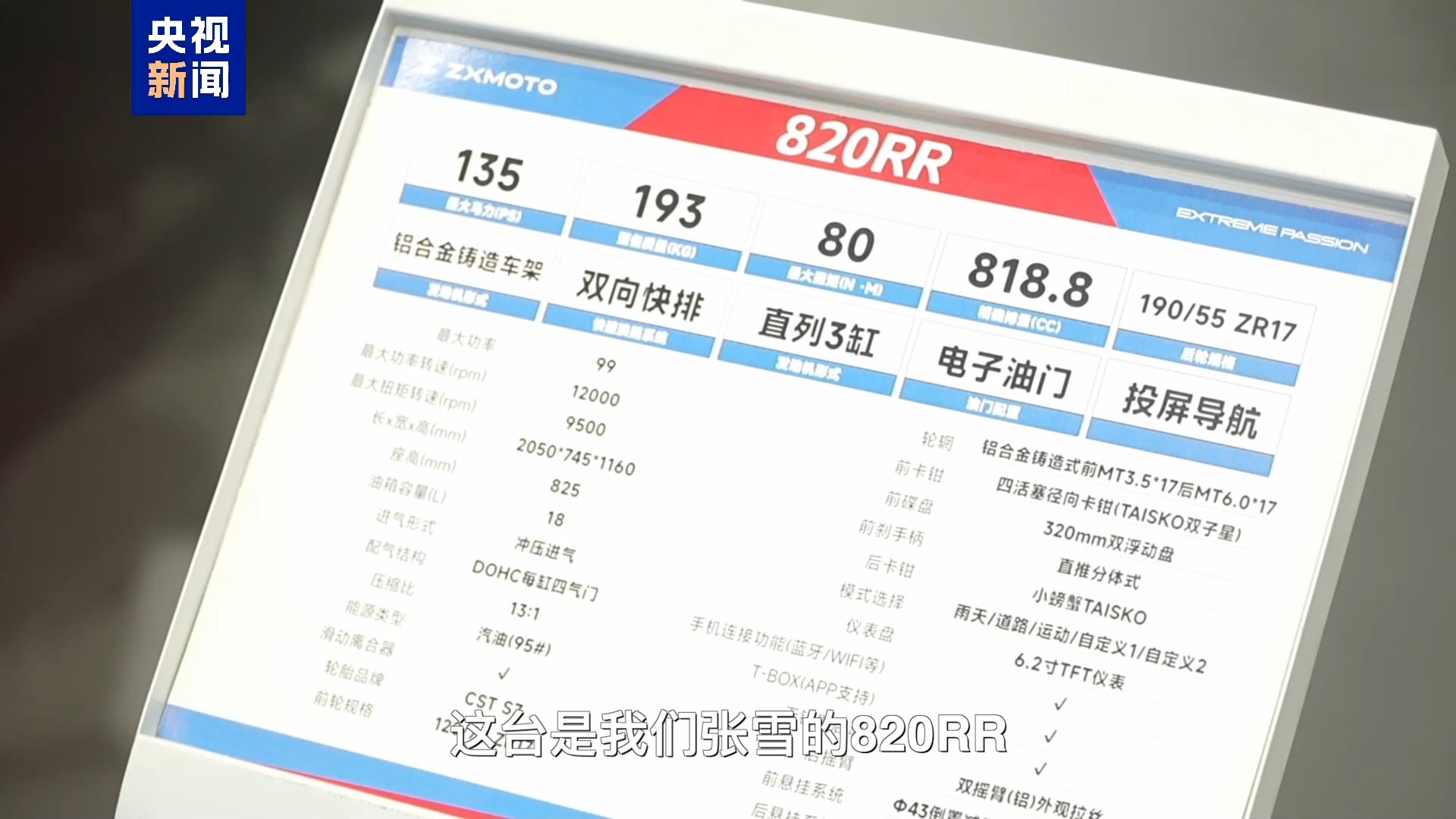 张雪机车海南代理商海口店负责人 吴钟发:这台是张雪的820RR,和夺冠的是同款车型。从夺冠之后,海口的销量翻了2到3倍。