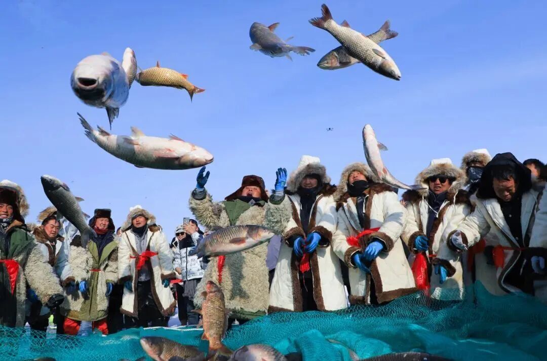 冬天来,一定要感受博斯腾湖冬捕,“冰湖腾鱼”的震撼景象与头鱼竞拍的热闹场面会给你留下深刻记忆。