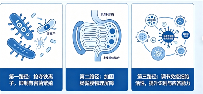 乳铁蛋白本身具有结合铁离子、抑制有害菌繁殖的作用;免疫球蛋白则能中和肠道内毒素与病原体片段;IDP®作为天然乳源复合蛋白,含多种小分子活性肽,可促进肠上皮细胞修复与黏膜免疫应答。三者叠加,从抑制致病菌、加固物理屏障、激活局部免疫三个层面协同作用。搭配的鼠李糖乳酪杆菌GG定植于肠道后,可分泌短链脂肪酸,进一步优化菌群结构,缓解因菌群失衡引发的腹泻倾向。