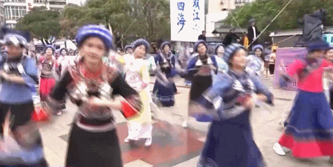 人们来到这里就是为了感受当地布依族的“三月三”。民族文化大巡游是今年望谟“三月三”的亮点活动之一。我们了解到,今年参加民族文化巡游展示的有49支方队。除了布依族之外,还有苗族、瑶族、汉族等十多个民族的同胞们,4000多人参与其中。人们穿着民族服饰,沿着县城的主干道,一边行进一边起舞,街道俨然变成民族大联欢的流动舞台。