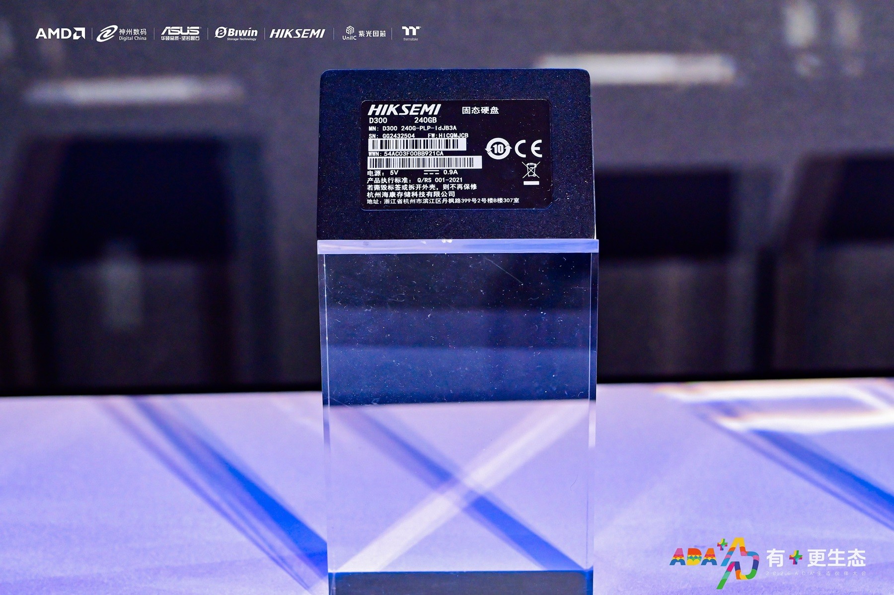 从消费端转向企业端,企业AI大模型训练、推理服务以及企业数据中台对存储提出了截然不同的要求——高带宽、低时延、数据安全与长期可靠性缺一不可。海康存储企业级SSDD300系列凭借卓越的性能与可靠性,吸引了众多与会嘉宾的关注。其采用3D TLC NAND与国产DDR4内存,搭配高性能双核ARM Cortex-R5Processor企业级主控,顺序读写速度达到538/509MB/s,4K随机读写IOPS达到98/61K,适用于读取密集型及轻度混合型工作负载。同时,该产品还搭载了经过深度优化的磨损均衡算法,显著降低性能波动,进一步提升了数据安全性与产品可靠性。该产品已在电信、金融、网络安全等多个领域实现规模化部署,为行业客户提供高度定制化的解决方案。