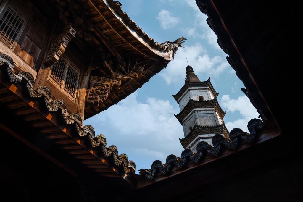 八百余年岁月沉淀,村里至今保存着16座古祠堂、古大厅、古塔、古寺,以及200多幢古民居。由于建筑遗存类型丰富、特色鲜明,新叶村被誉为“明清建筑露天博物馆”。建德市文化遗产保护中心工作人员陈志昌说,要读懂新叶,首先要先读懂它的古建。