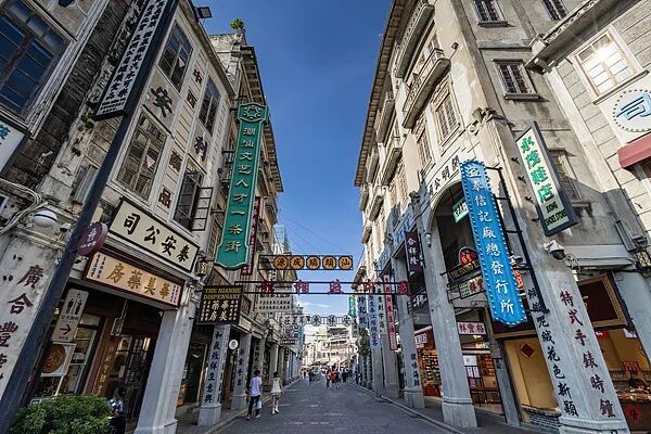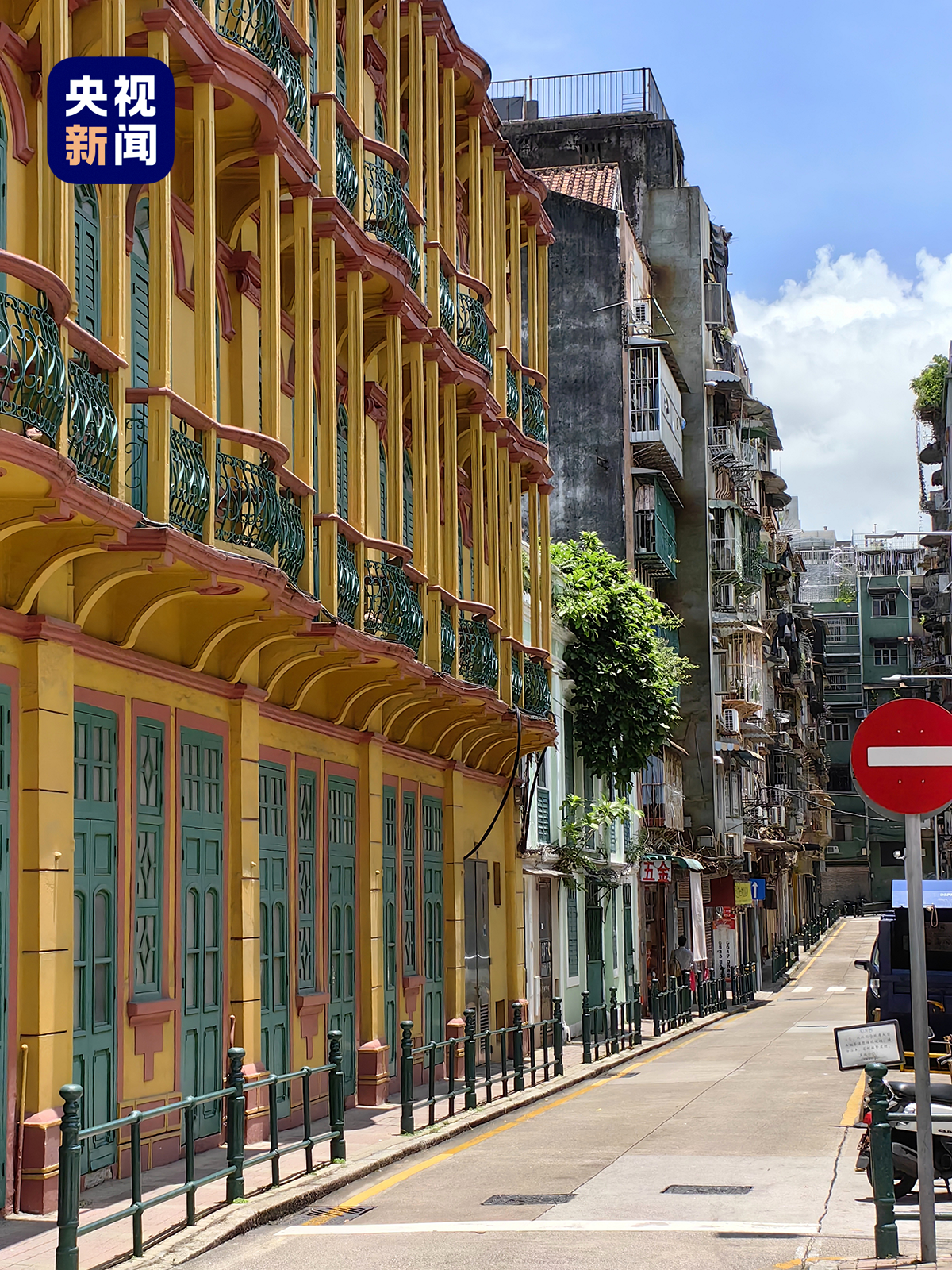“华洋共处,中西合璧”是澳门的特色。这里周边的建筑五彩缤纷,粉、蓝、黄等多巴胺色调交织在一起,每一个街角都散发着复古气息,随手一拍便自带电影感。