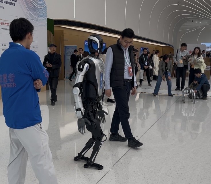 在中关村国际创新中心内,人形机器人“夸父”每天都很忙,它承担着迎宾工作,为公众解答疑问、提供讲解和指引服务等,碰到有人问路也能自如为其带路。
