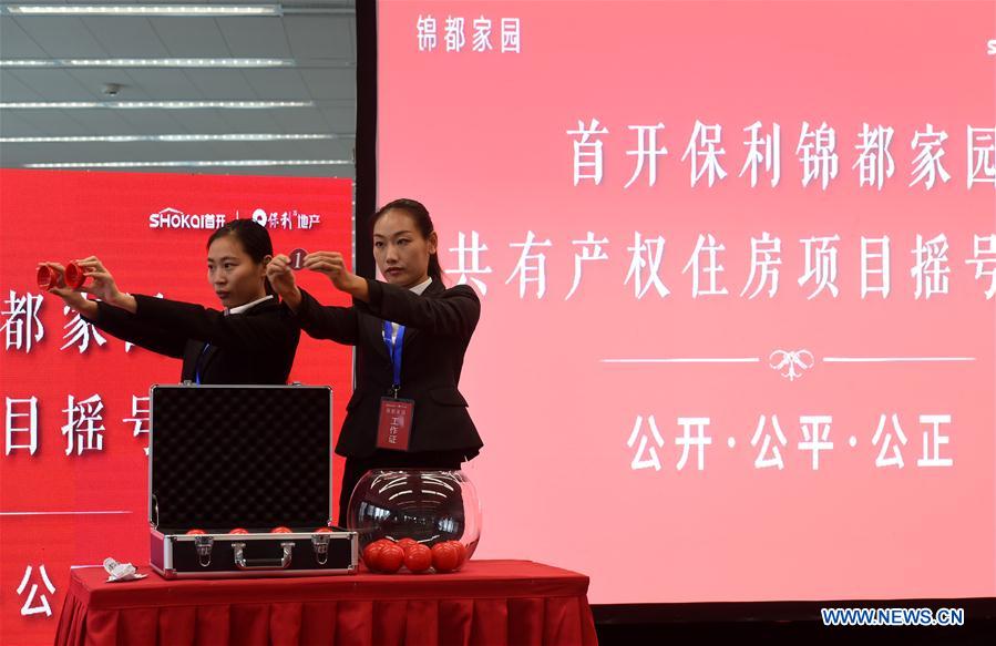 File photo taken on Sept. 30, 2017 shows the lottery ceremony of qualification of purchasing the Beijing's first joint ownership homes in Beijing, capital of China. Beijing witnesses a great change in the past five years and the city will keep focusing on the coordinated development in Beijing, Tianjin and Hebei regions and objective of removing non-capital functions. (Xinhua/Luo Xiaoguang)