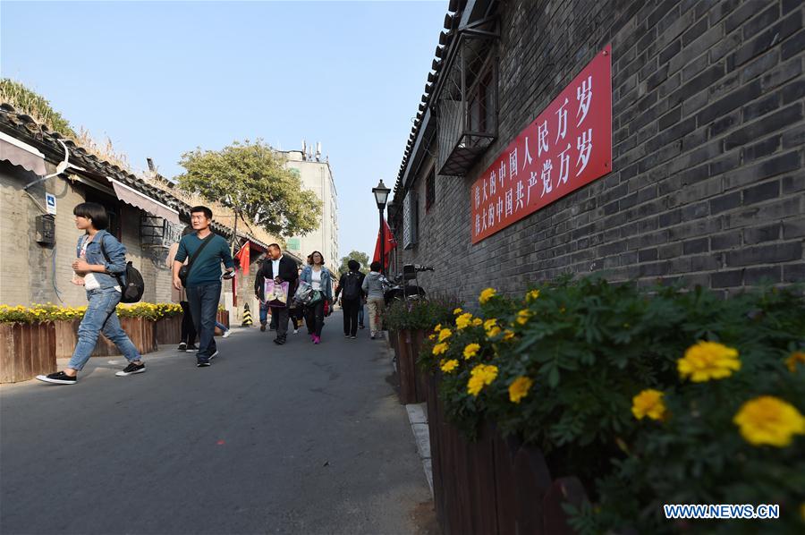File photo taken on Oct. 6, 2017 shows tourists visit Yuer Hutong in Beijing, capital of China. Beijing witnesses a great change in the past five years and the city will keep focusing on the coordinated development in Beijing, Tianjin and Hebei regions and objective of removing non-capital functions. (Xinhua/Ju Huanzong)