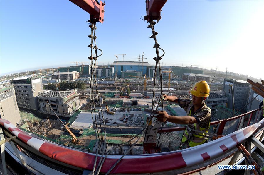 File photo taken on Sept. 11, 2017 shows a construction site of the capital's subsidiary administrative center in Beijing, capital of China. Beijing witnesses a great change in the past five years and the city will keep focusing on the coordinated development in Beijing, Tianjin and Hebei regions and objective of removing non-capital functions. (Xinhua/Luo Xiaoguang)
