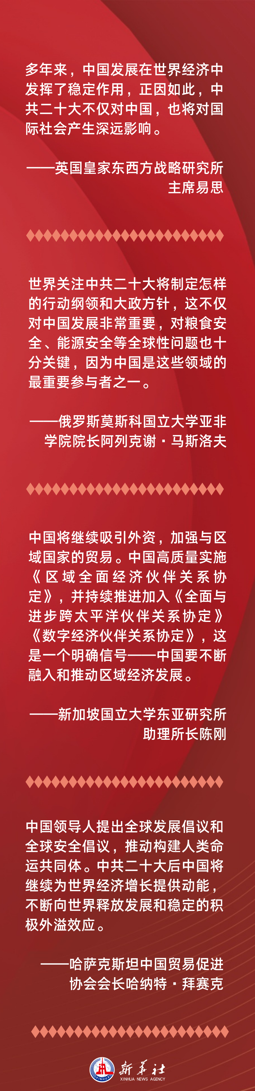 当今世界,百年变局和世纪疫情相互交织,经济全球化遭遇逆流,世界进入新的动荡变革期。多国人士期待,在中共二十大制定的发展蓝图引领下,充满韧性和潜力的中国经济为推动全球经济复苏及建设开放型世界经济提供强大动能,以中国新发展为世界带来新机遇。