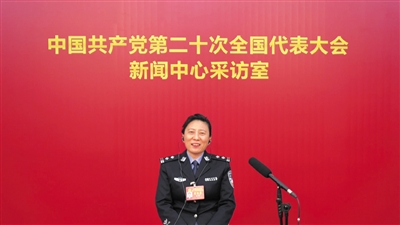 10月17日,中国共产党第二十次全国代表大会新闻中心,新京报记者连线党的二十大代表、甘肃省酒泉市公安局肃州分局社区民警康丽。作为一名来自基层一线的党代表,康丽现场聆听了二十大报告。她激动地说:“在今后的工作中,我要进百家门、串百家户,扎根基层一线,及时掌握社情民意,认真宣传法律知识,引导群众做社会主义法治的忠实崇尚者、自觉遵守者、坚定捍卫者,努力使遵法学法守法用法在全社会蔚然成风。”