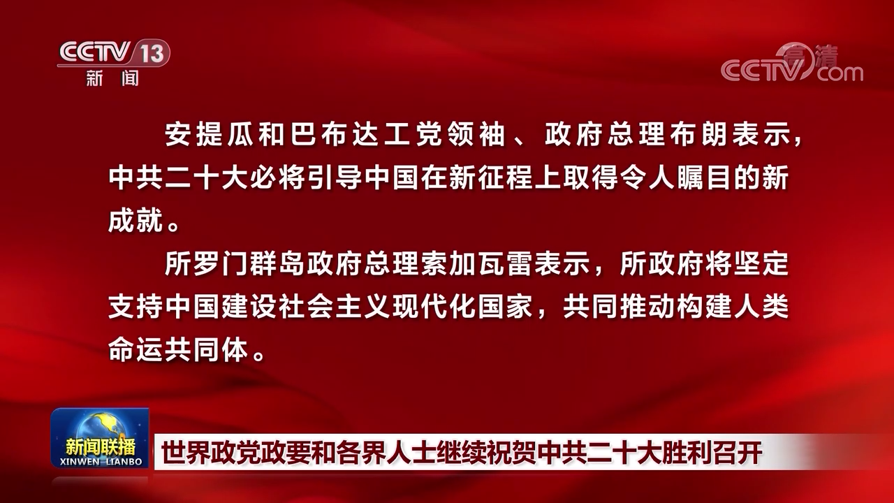 安提瓜和巴布达工党领袖、政府总理布朗表示,中共二十大必将引导中国在新征程上取得令人瞩目的新成就。
