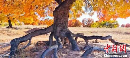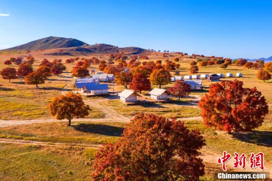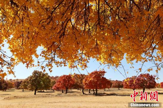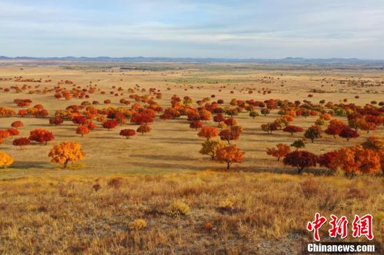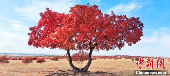 10月,内蒙古兴安盟科右中旗60727公顷五角枫开始由绿转黄、由黄渐橙、由橙变红,与湛蓝的天空、青黄的草地辉映,皴染了一幅“枫”情万种的优美画卷。 国建军 摄